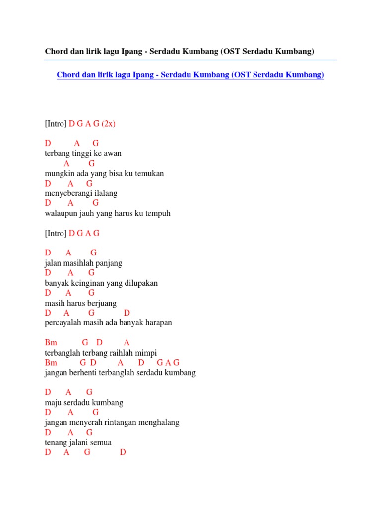 Chord Dan Lirik Lagu Ipang Serdadu Kumbang Ost Serdadu Kumbang