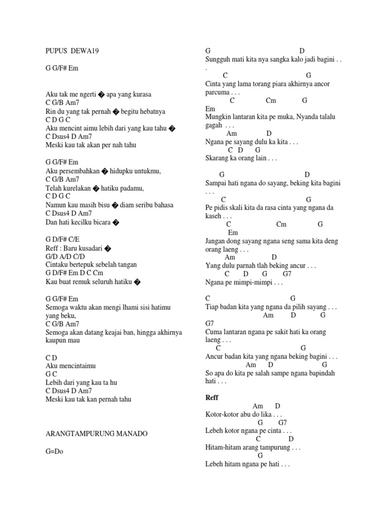 Chord Kunci Gitar Manado Kosong Dua Calonpintar Com