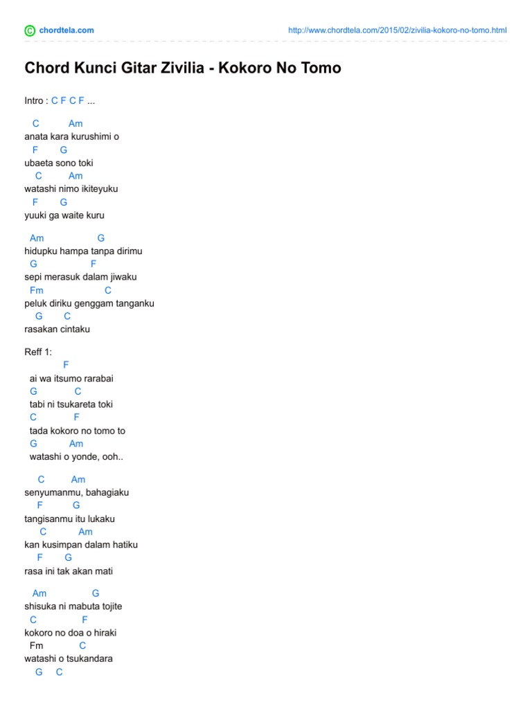 Chord Kunci Gitar Zivilia Kokoro No Tomo