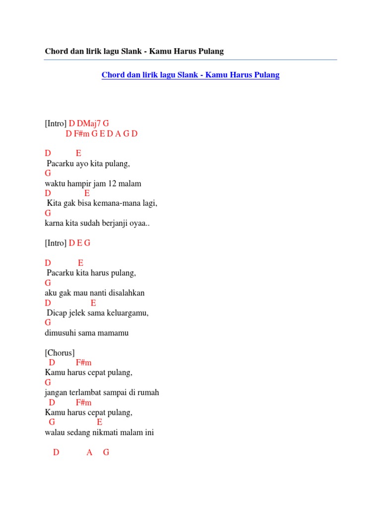 Kamu harus pulang chordtela. Chord gitar dan lirik lagu Slank - Kamu Harus Pulang dengan kunci dasar. Ngga mau mengerti D A G Mereka. Reni pliss I need to talk to you.